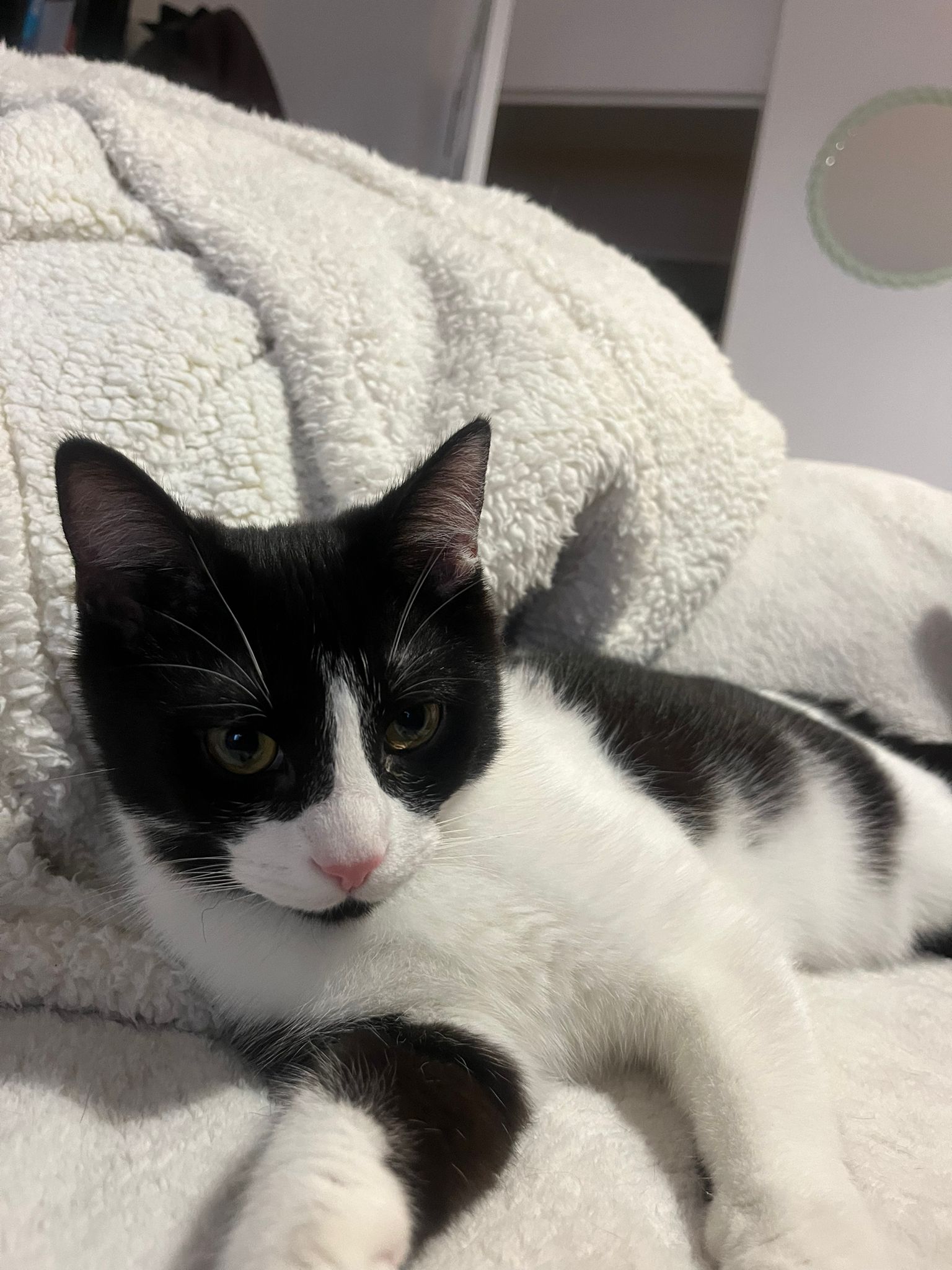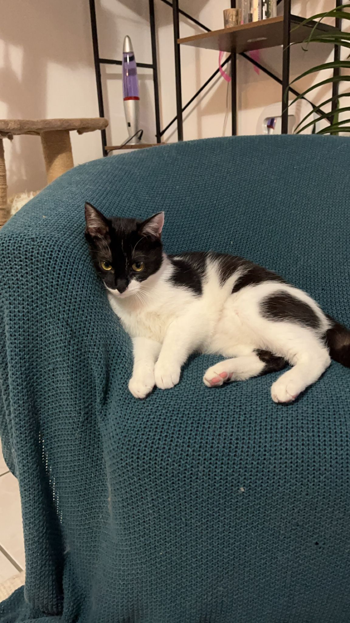 Fena (nez noir) est une petite chatte adorable, à la fois délicate et pleine de curiosité. Observatrice dans l’âme, elle préfère souvent prendre le temps d’analyser son environnement avant d’agir. Cette petite prudence fait tout son charme !