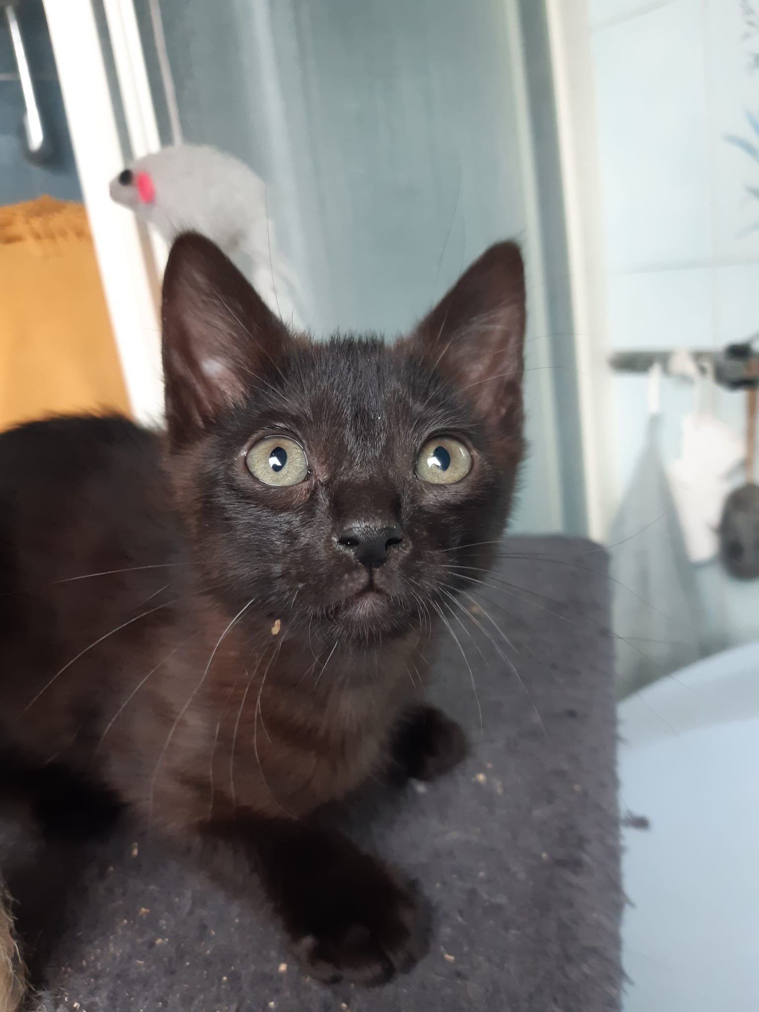 Molette, petite femelle née le 16 mars 2025, 2 jours après avoir sorti sa maman de la rue.