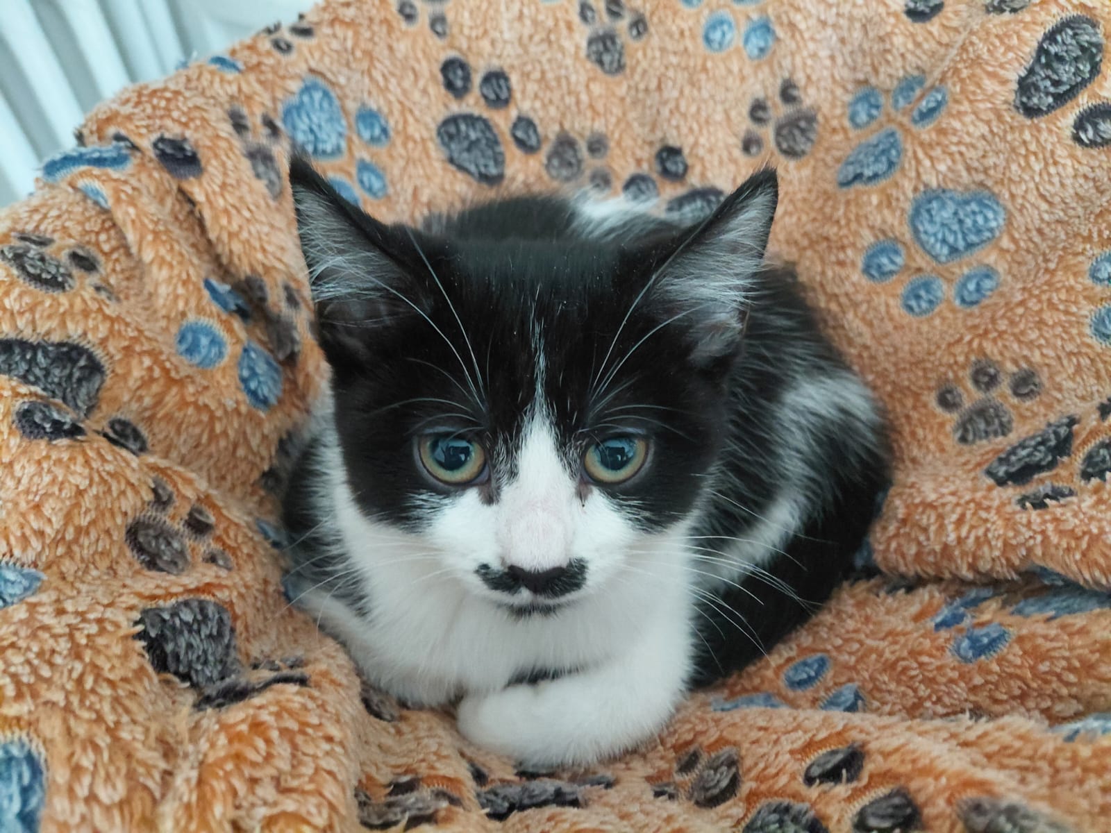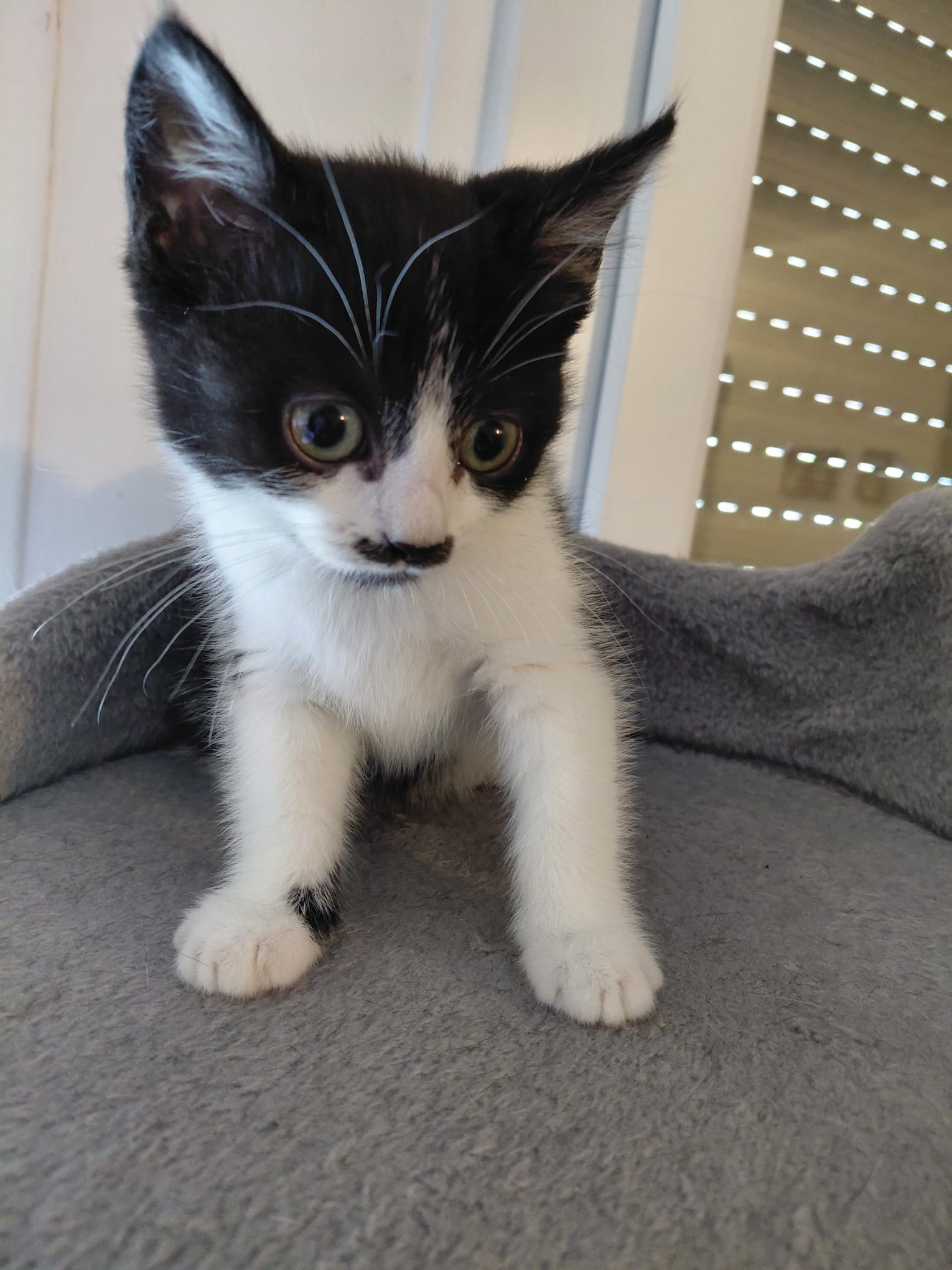 Odille est un adorable châton femelle de 3 mois, né le 7 juillet 2025. Elle est issue d'une portée de 4 chatons nés sur un balcon et pris en charge par l'association à 2 semaines et demi.