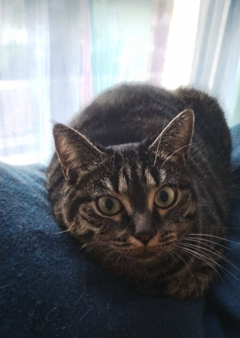 Je m'appelle Madame. Je suis une jeune chatte qui ADORE les câlins mais j'aime aussi bien être tranquille par moment et le fait savoir facilement. Je suis aussi très gourmande. Un mot qui me caractérise... CURIEUSE !