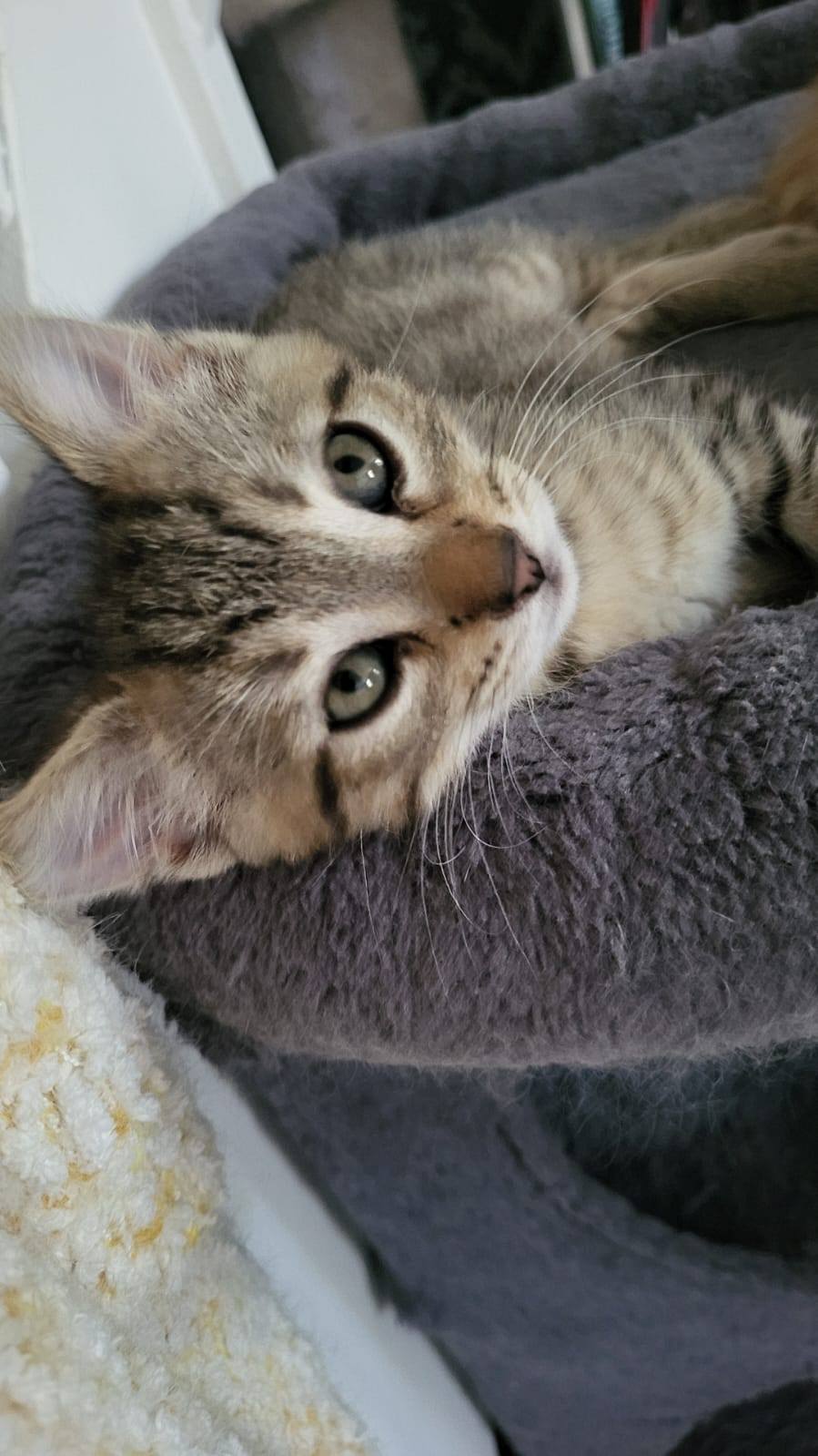 Trouvé en pleine forêt dans un carton avec ses 4 frères et soeurs à l'âge de 3 semaines, sans maman, nous avons dû le biberonner.